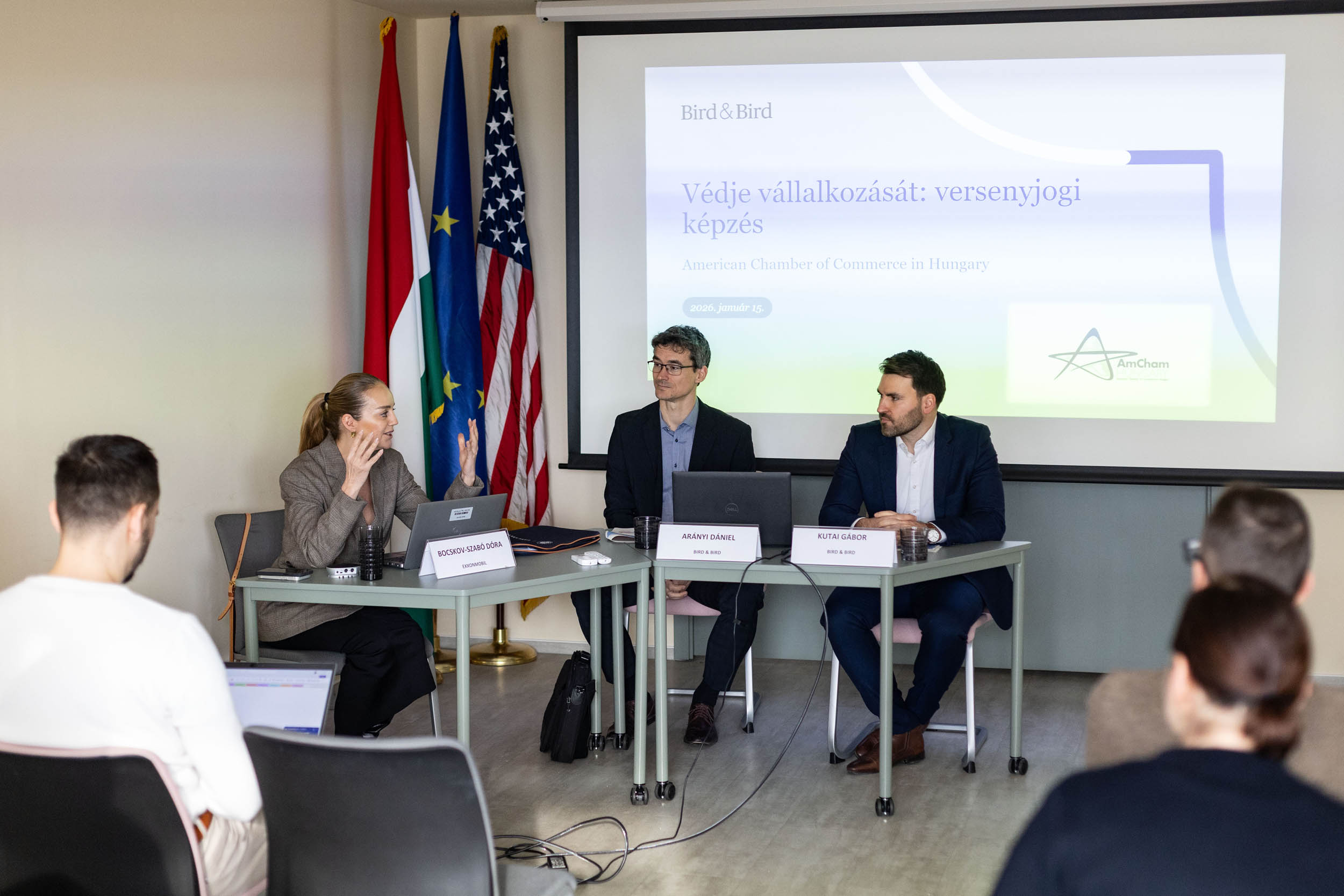 The session was led by dr. Dániel Arányi, Partner and Head of the Competition & EU team, and dr. Gábor Kutai, Senior Associate in the Competition & EU team at Bird & Bird, who provided a comprehensive overview and shared practical insights, including the key principles applying to trade associations and companies under EU and Hungarian competition law.