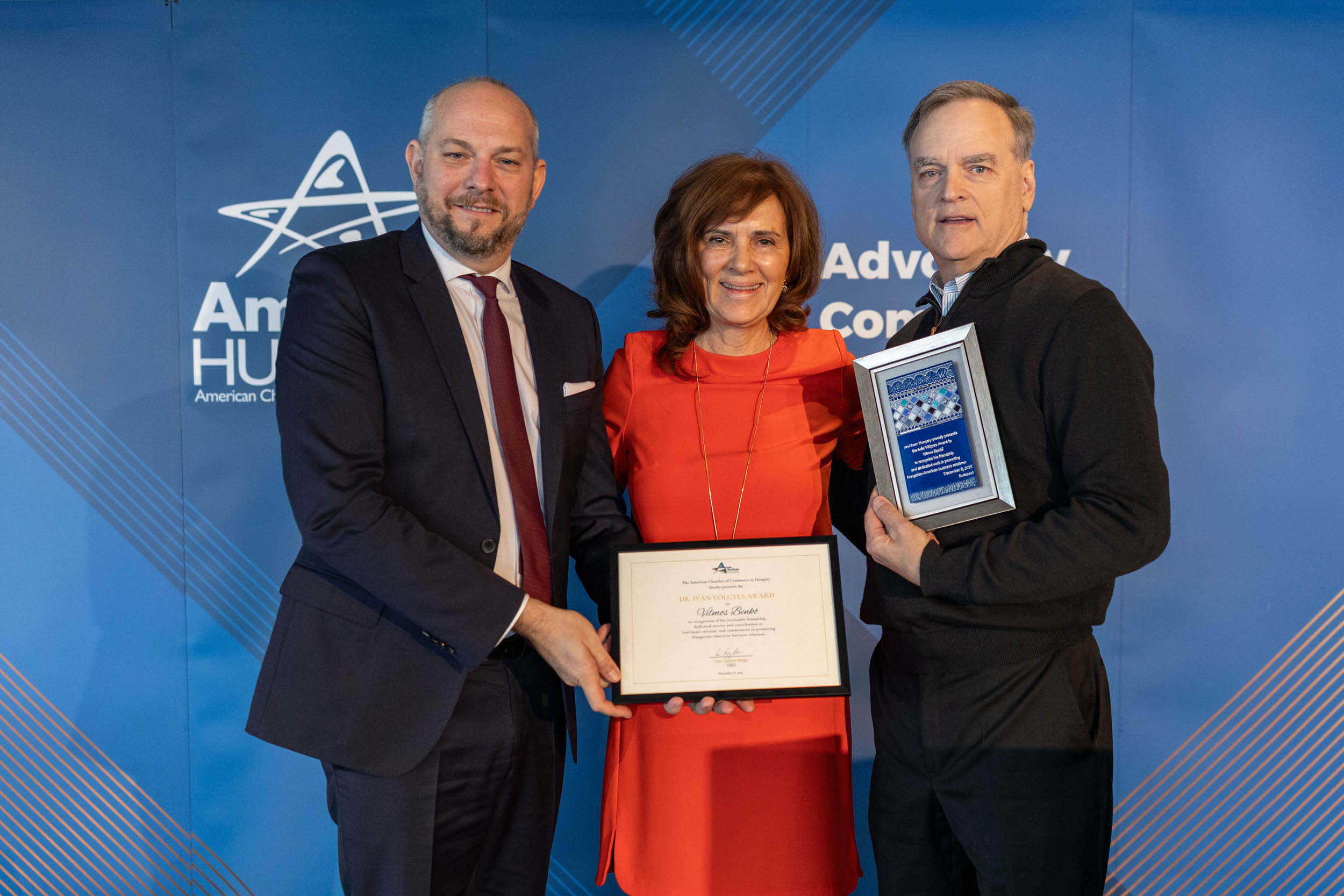 AmCham also presented the Dr. Iván Völgyes Award, recognizing individuals who make significant contributions to Hungarian–American business relations. This year’s award went to Vilmos Benkő, a longtime AmCham supporter, Hungarian-American entrepreneur, communication expert, public speaker, coach, philanthropist, and former AmCham President.