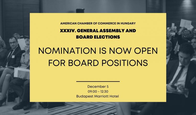 Nominations are now open for the board elections at the XXXIV. General Assembly on December 5. The opening positions for two-…